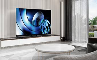有機EL発光層を3色4層にし、従来の約1.3倍*1の明るさを実現。また、各色純度を高めることで色域も約1.1倍*2へ。さらに、新開発の低反射ARコートで外光の映り込みを約3割*3低減しました。